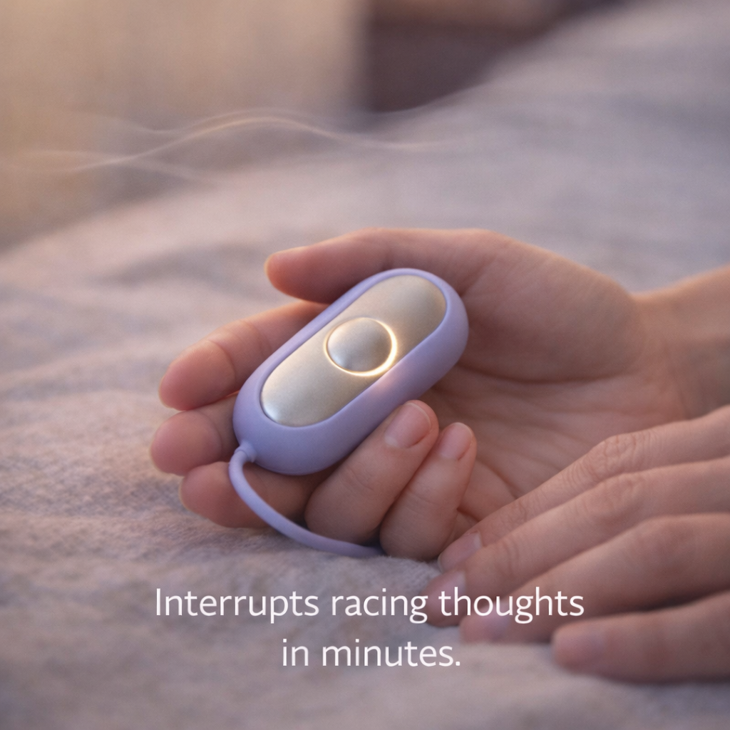 When your mind won't stop racing, you can't sleep—and when you can't sleep, anxiety gets worse. This device interrupts the anxiety loop by giving your brain something else to focus on, slowing your heart rate, and triggering calm. Users with ADHD, panic disorder, and generalized anxiety report that their racing thoughts finally quiet down within minutes.